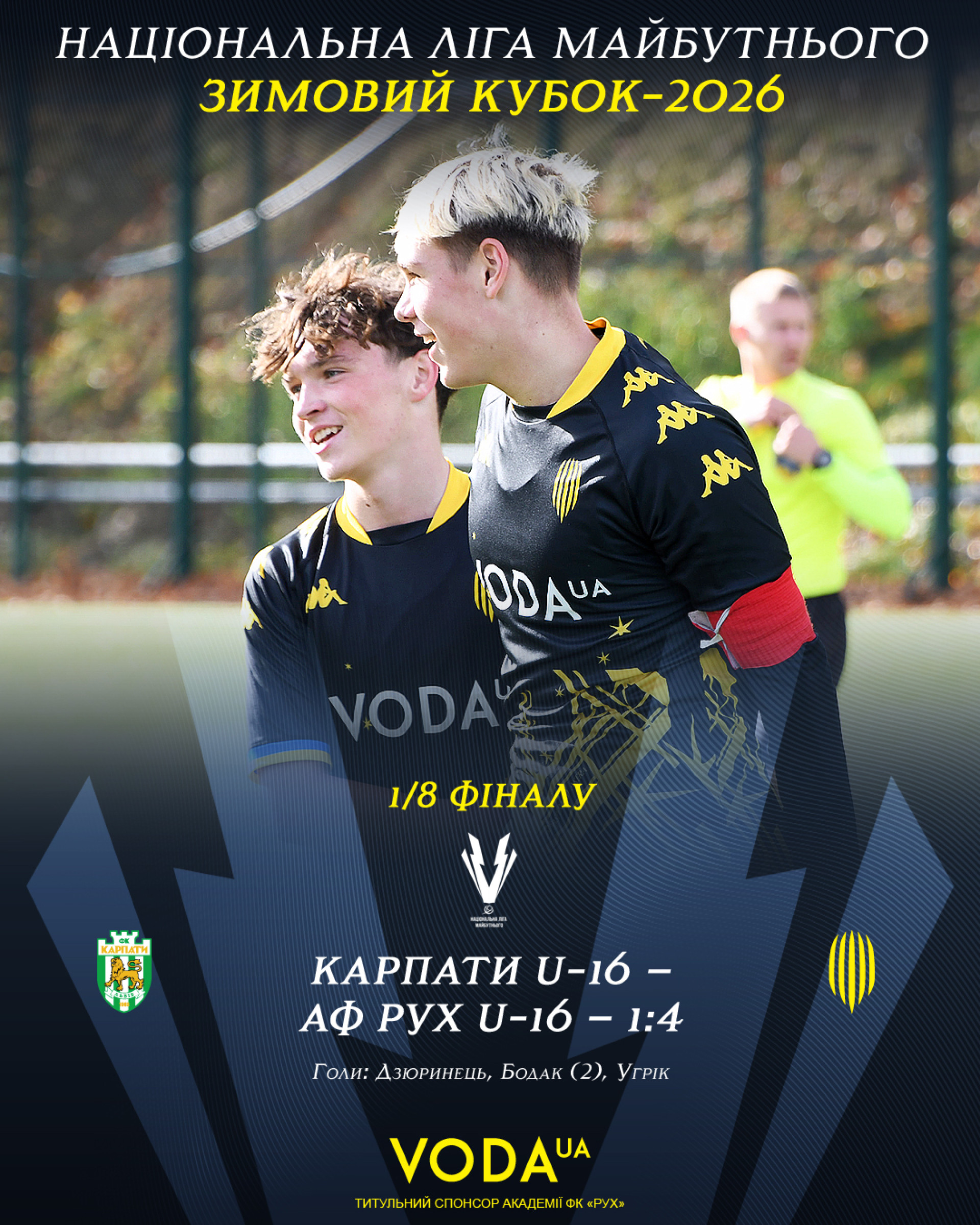 Відтак 4:1 на користь «жовто-чорних». Тож «Рух» U-16 проходить в 1/4 фіналу змагань. Базова дата поєдинку – 28 лютого.